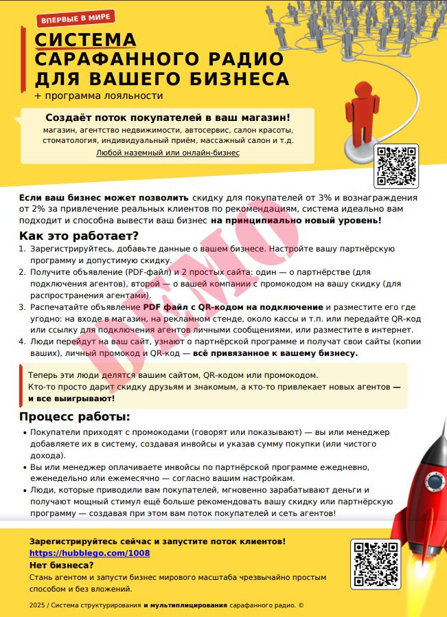 - Получайте доход от работы агентов, которых привлекут эти магазины.
