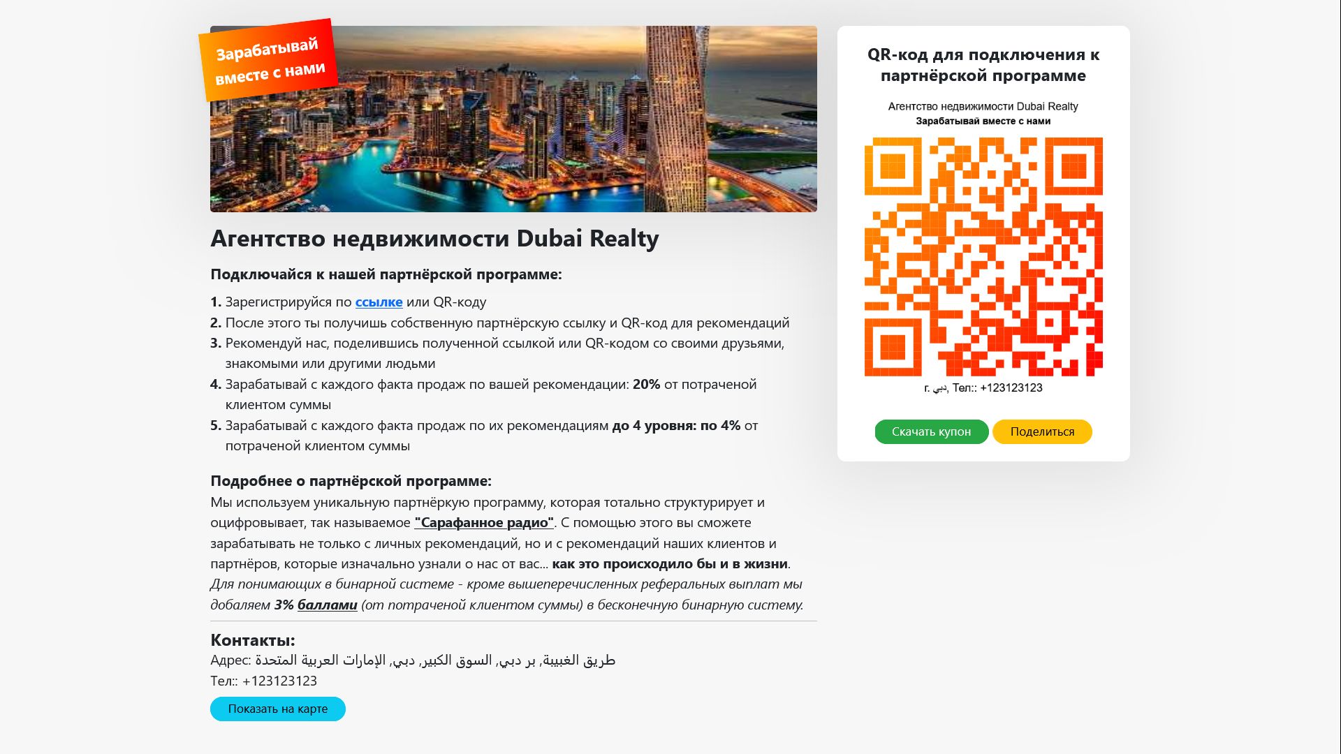 Мы работаем над масштабным обновлением, которое позволит владельцам салонов красоты, агентств недвижимости, автосервисов, кафе — любого реального бизнеса — в несколько кликов запустить собственную многоуровневую партнерскую программу!